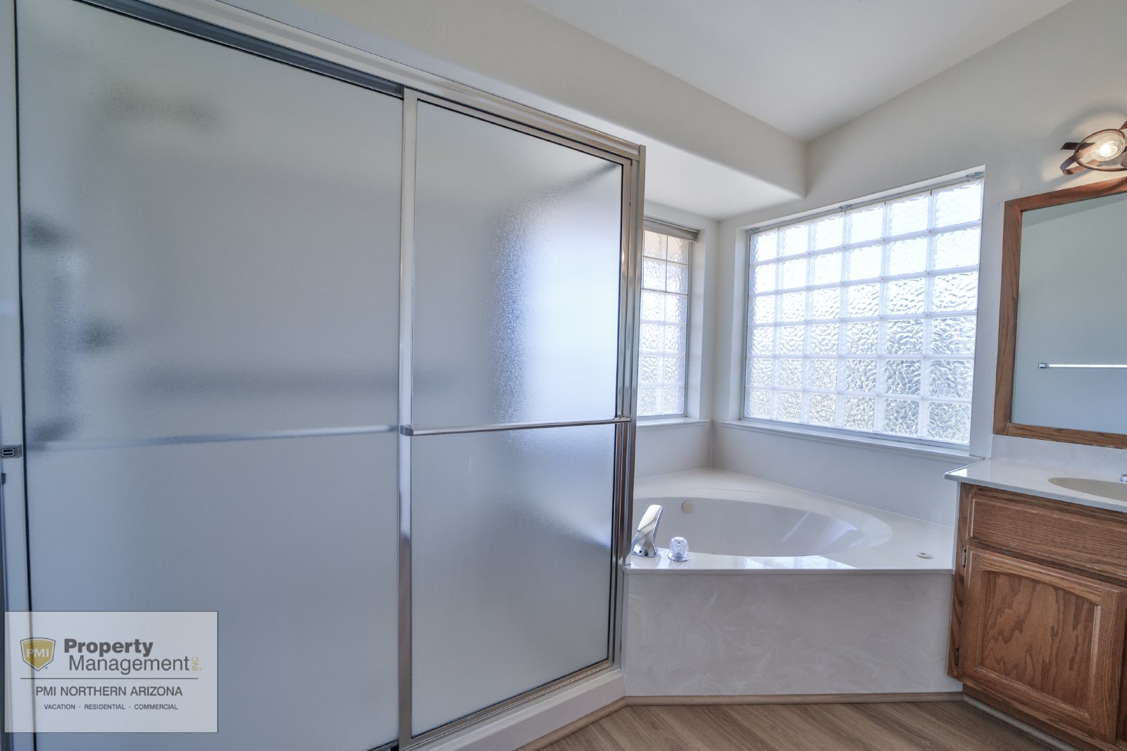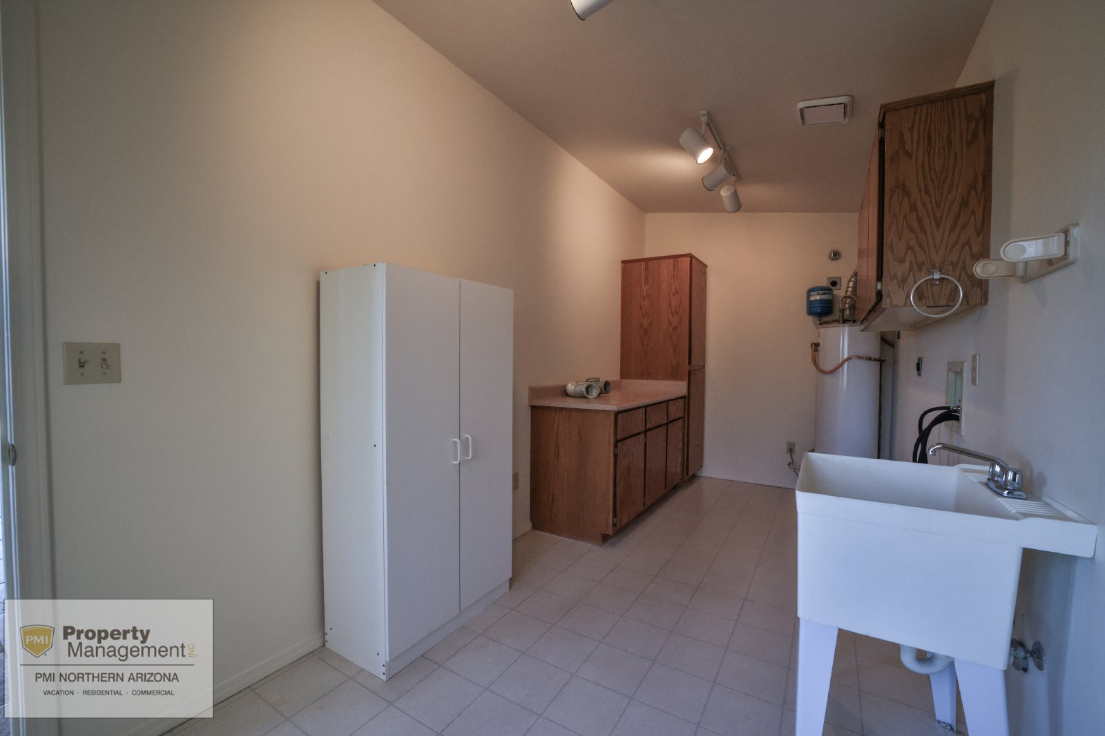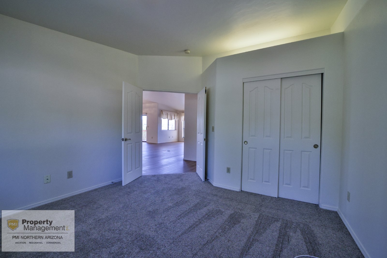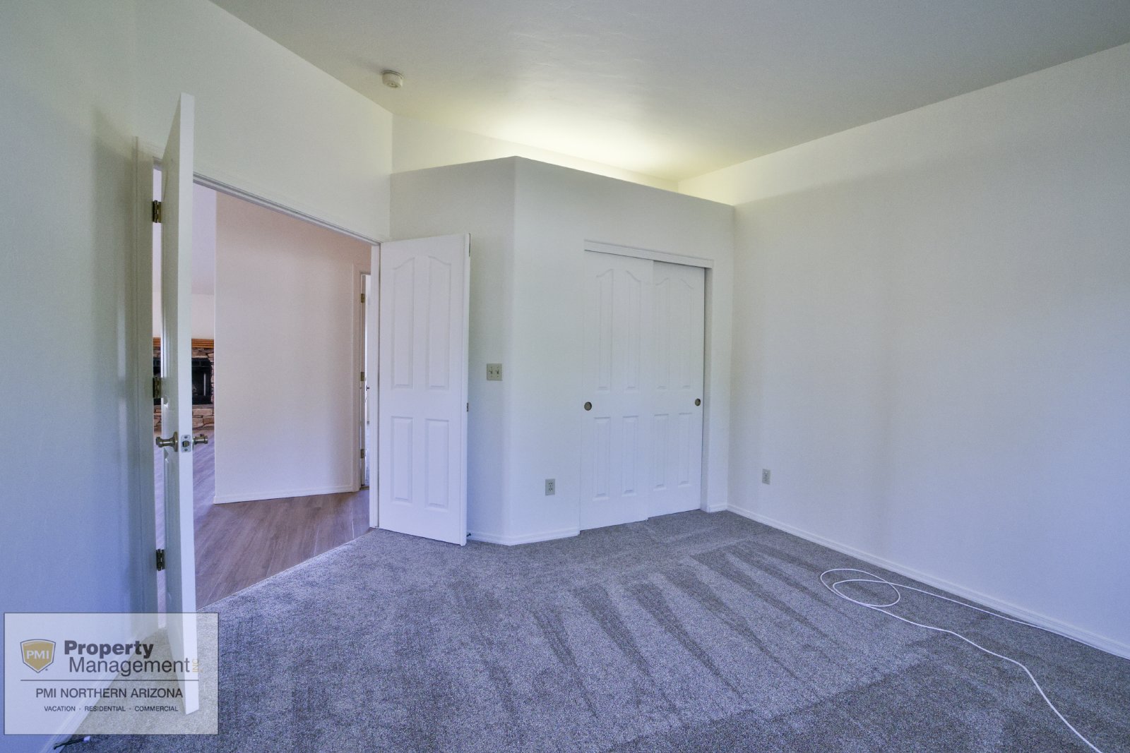 Spacious 3 bedroom, 2 bath, 1,914 sq ft home with 2 car garage in Yavapai Hills with views of Bradshaw Mountains. Open concept kitchen and living room with large windows and doors to partially covered back deck looking out to Bradshaw Mountain Range. Deck is gated at the stairs leading down to the small fence enclosed portion of the back yard. Kitchen features abundant cabinet and counter space. Island holds double basin kitchen sink and dishwasher. Refrigerator, stove and microwave are also included. Raised ceilings through out. Carpeted bedrooms, tiled kitchen, vinyl in laundry room and bathrooms. Freshly painted interior and new vinyl plank in living room and hallway. Window coverings of blinds and valances included. Fireplace in living room is not for tenant use. Master bedroom includes slider to back deck, walk-in closet and en suite bath with dual sinks, separate shower and tub (jets are not operational). Laundry room off of kitchen includes cabinet storage, counter top space, mud sink and gas or electric dryer hook ups. Garage access through laundry room.